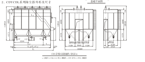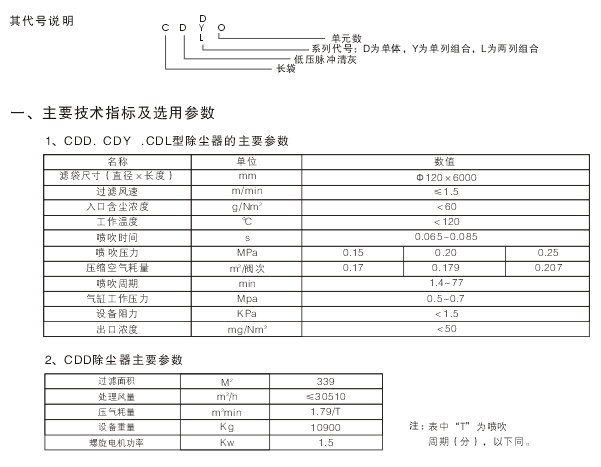 此係列除塵器共有CDD、CDY、CDL三種形式產(chǎn)品,共計19種(zhǒng)規(guī)格,其CDL有2,3……10單元共9個規格,CDY有1,1.5……5共有9個規格,CDD有(yǒu)1個(gè)規格(相當於半(bàn)個單元)。