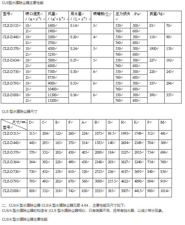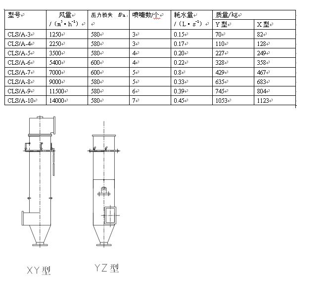 CLS 型水膜除塵器有 XN 、 XS 、 YN 、 YS 四種組合式,其識(shí)別方法同旋風除塵器。